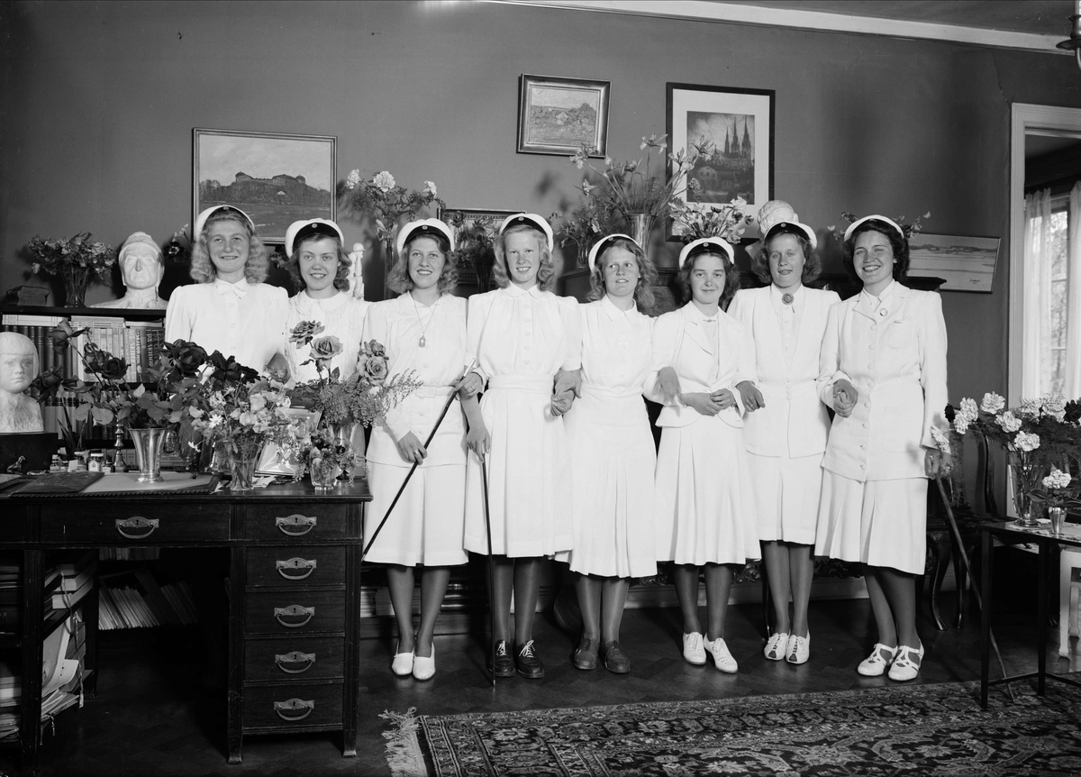 Grupporträtt - studenter i hemmiljö, Uppsala maj 1942