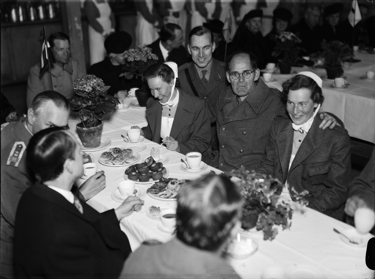 "Återinvigning av bibliotek och manskapsmäss på I. 8. Högtidsdag på Uplands regemente i går", Polacksbacken, Uppsala 1943