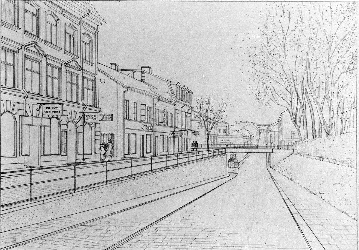 Ritning av tunnel under järnvägen, Vaksalagatan, Uppsala 1943
