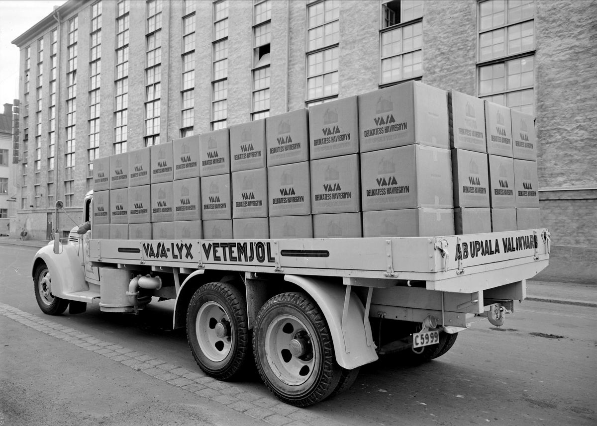 Lastbil utanför AB Upsala Valskvarn, kvarteret Njord, Väderkvarnsgatan, Kvarngärdet, Uppsala september 1943