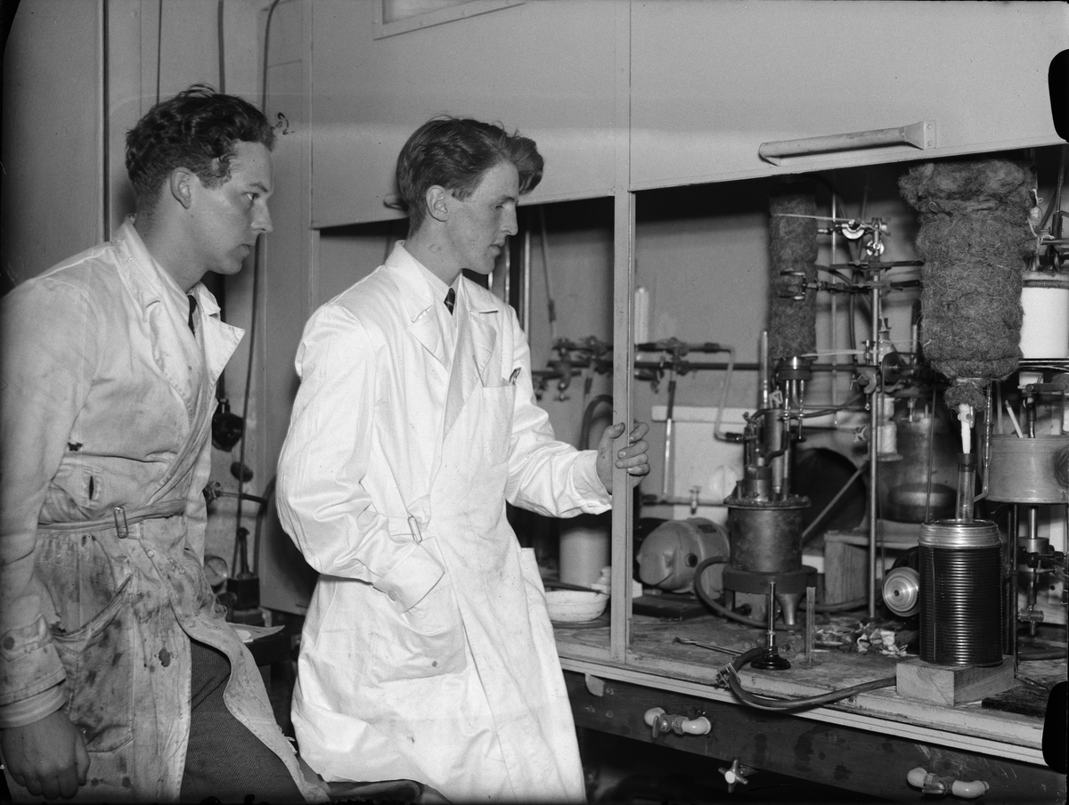 "Konstgummi intresserade teknologer. Stockholmare studera Svedbergska institutionen", Uppsala 1942