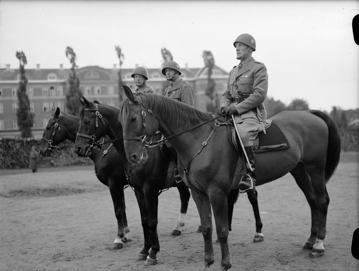 "Högtidlighet på Polacksbacken i går" - major Lindgren, överstelöjtnant Lindskog och major Nilsson, nyutnämnda vid Upplands Regemente, I8, Uppsala oktober 1942
