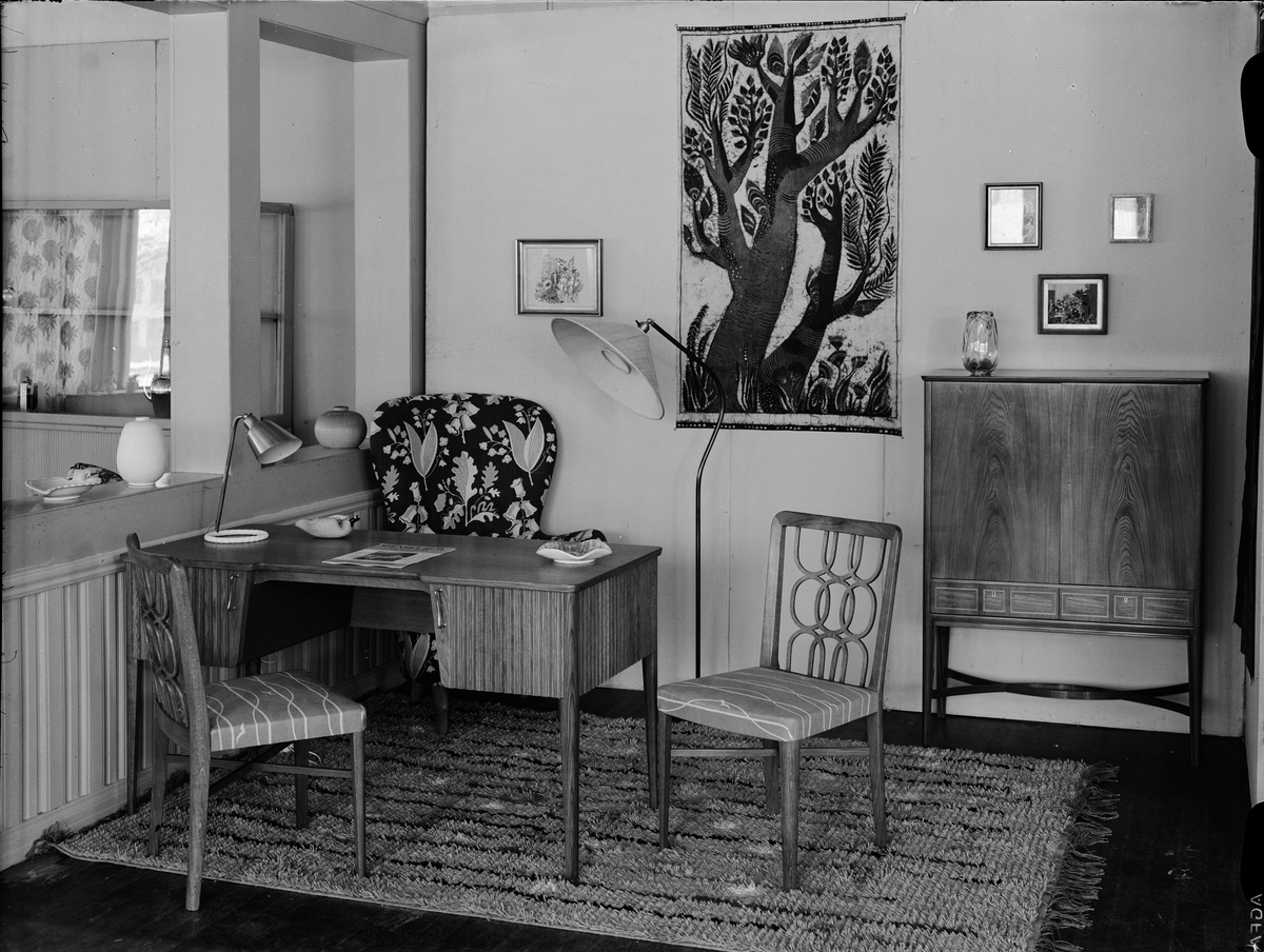 "Nyttan och skönheten höra väl tillsammans" - interiör från Konsthantverkarnas Gilles och Upplands Konstförenings utställning på Flustret, Uppsala mars 1942