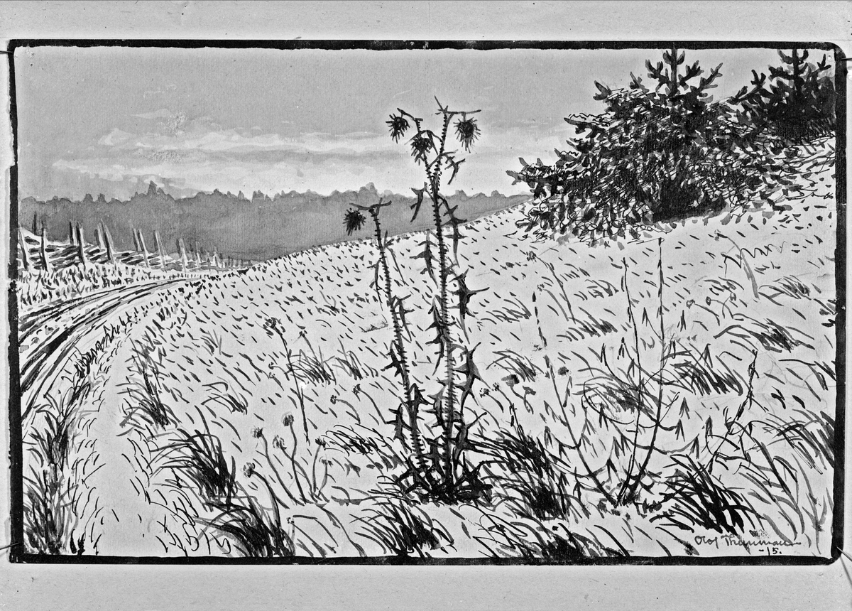 Konstverk - tuschteckning signerad konstnären Olof Thunman 1915