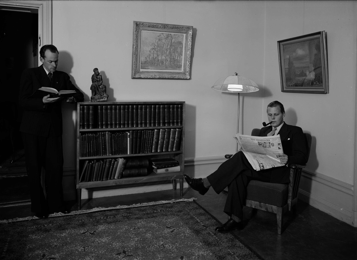 Titel: "Uplänningarnas renoverade nationslokaler invigda" - läsrum i nytt skick, Upplands studentnation, Uppsala november 1942