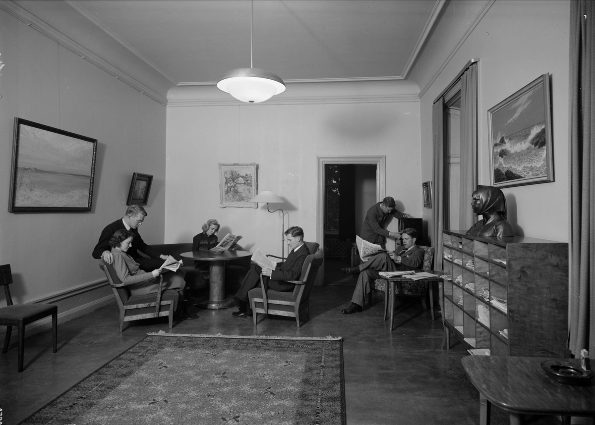 "Uplänningarnas renoverade nationslokaler invigda" - läsrum i nytt skick, Upplands studentnation, Uppsala november 1942