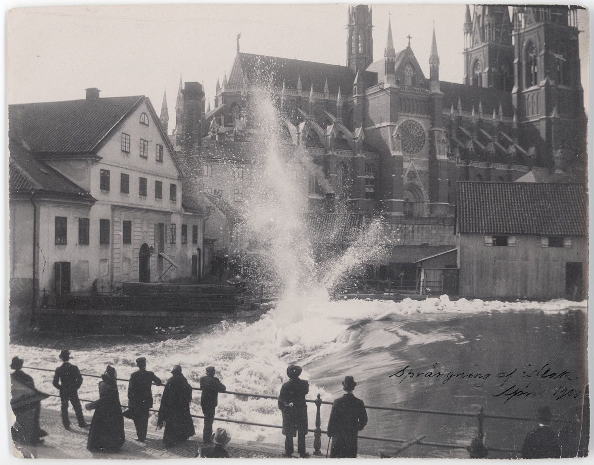 Sprängning av isflak, Fyrisån, Uppsala april 1900