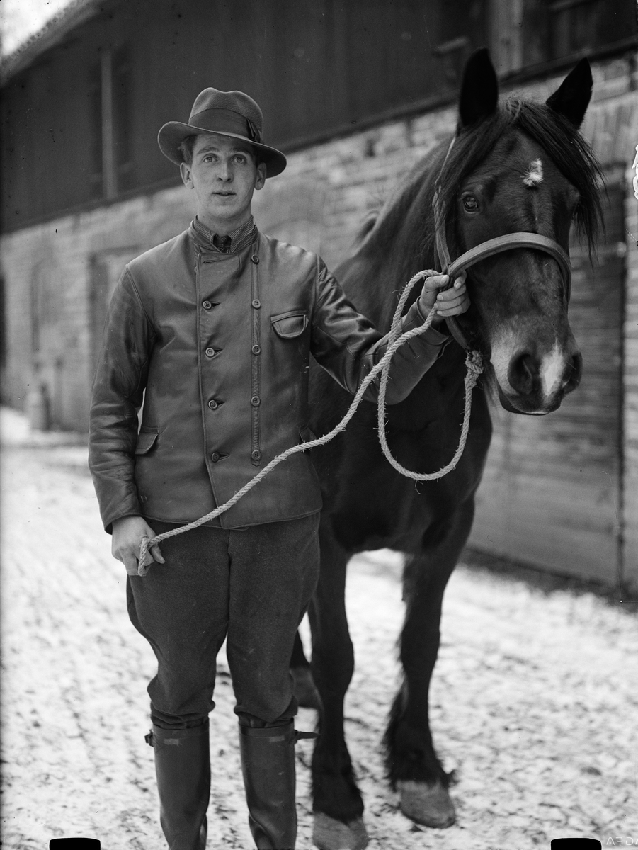 "J.U.F.-tävlan i hovbeslag" i Lytta, Bälinge socken, Uppland januari 1935. Vinnaren Uno Andersson från Viksta JUF