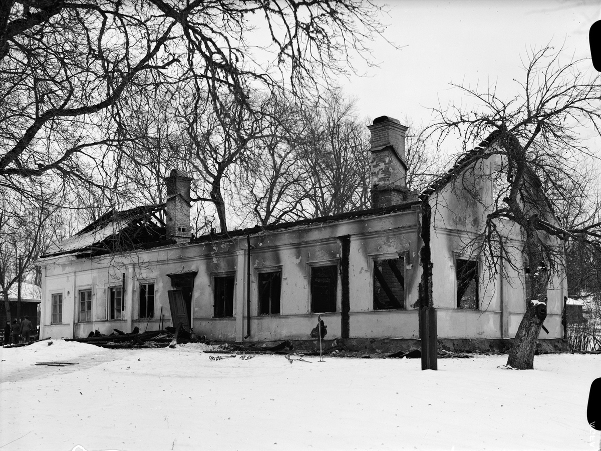 Studenternas friluftsgård, Vårdsätra gård i Vårdsätra eldhärjad, Uppsala 1945