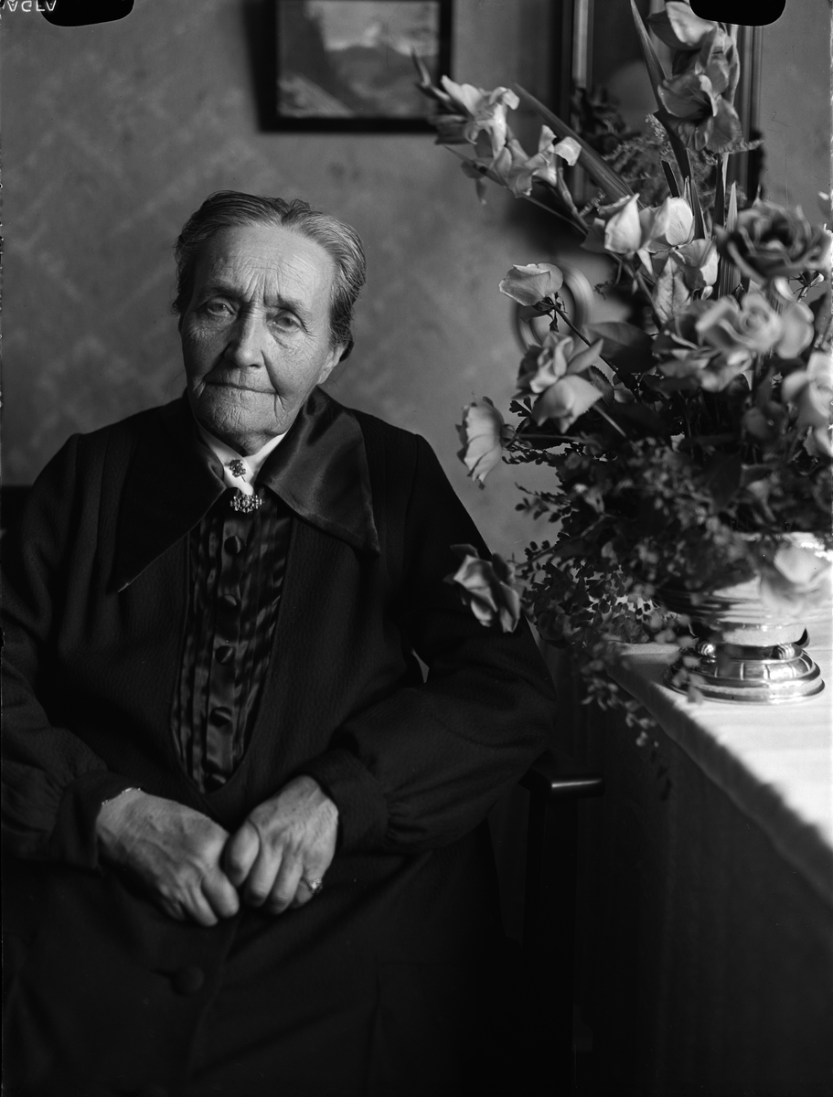 Titel: Födelsedagsporträtt - åldrig kvinna, sannolikt Uppsala 1944
