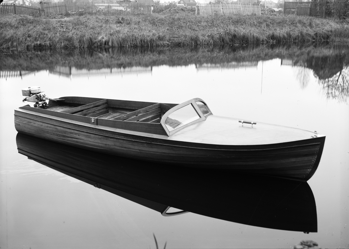 Motorbåt, sannolikt på Fyrisån, Uppsala, 1934