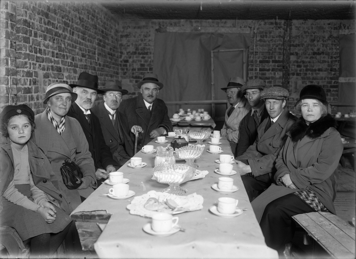 Byggmästare Anders Diös på taklagskaffe, Uppsala 1933