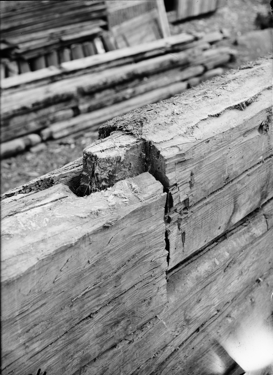 Tappskarv på uthus - nu på friluftsmuseet Disagården - under nedmontering i Gränby, Björklinge socken, Uppland
