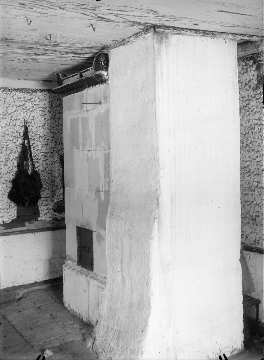 Interiör från Nyvlastugan - nu på friluftsmuseet Disagården - på ursprunglig plats i Nyvla, Bälinge socken, Uppland
