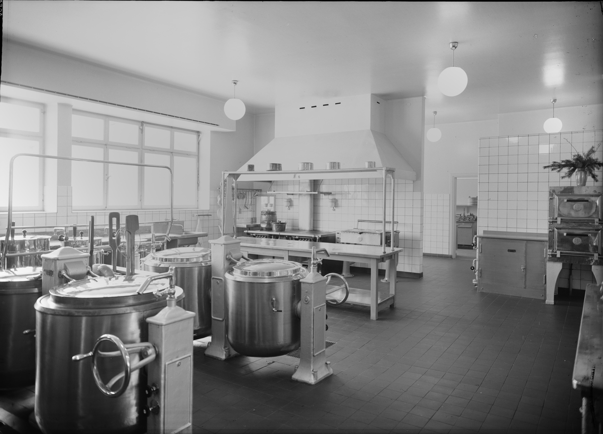 Köket i Uppsala Ålderdoms- och sjukhem, kvarteret Idun, Svartbäcken, Uppsala januari 1936