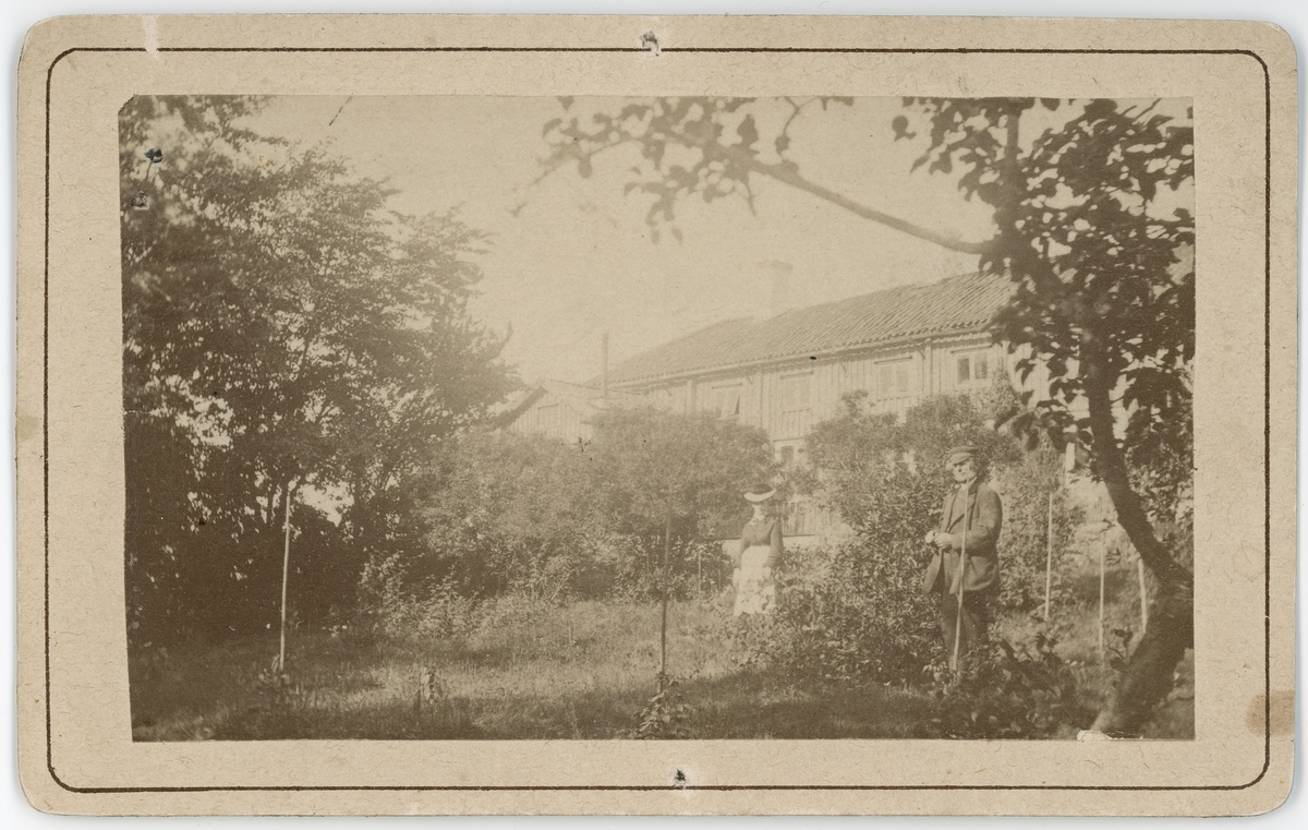 Kvinna och man i trädgård, Krusenberg, Uppland