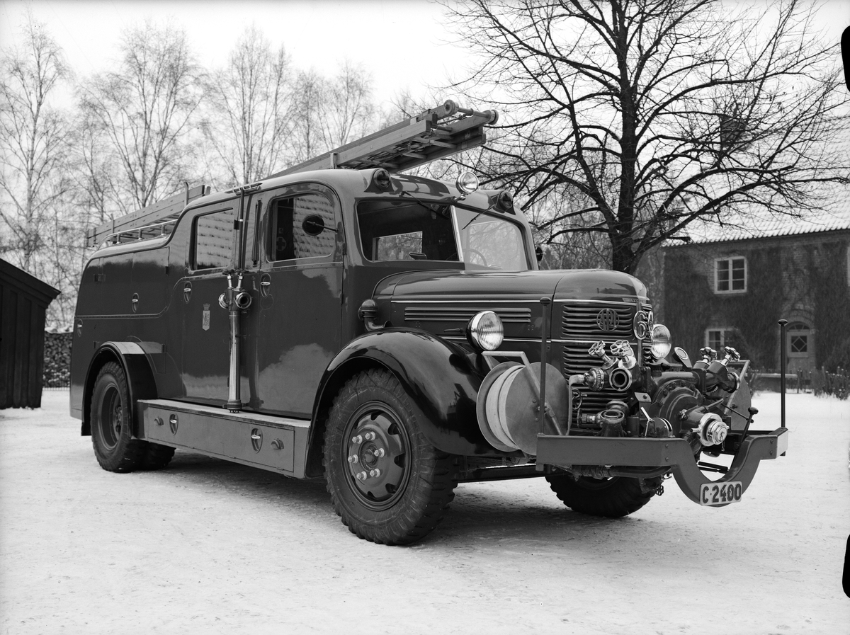 "Ny ambulanstyp och tiptop brandvagn i Upsala", Uppsala 1947