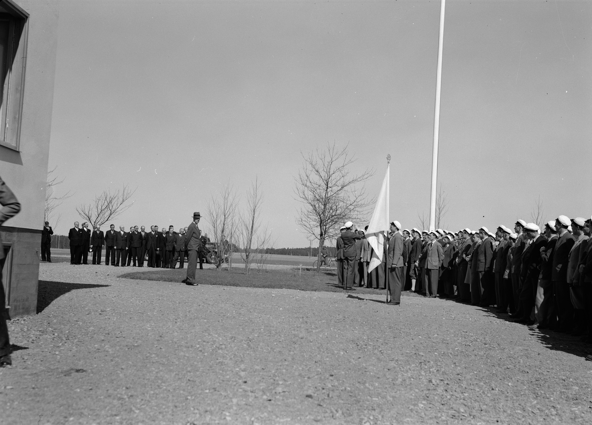 Titel: "Kronprinsen på heldagsbesök vid Lantbrukshögskolan. Tog intresserad del av de senaste vetenskapliga rönen inom modernäringen", Ultuna, Uppsala maj 1947