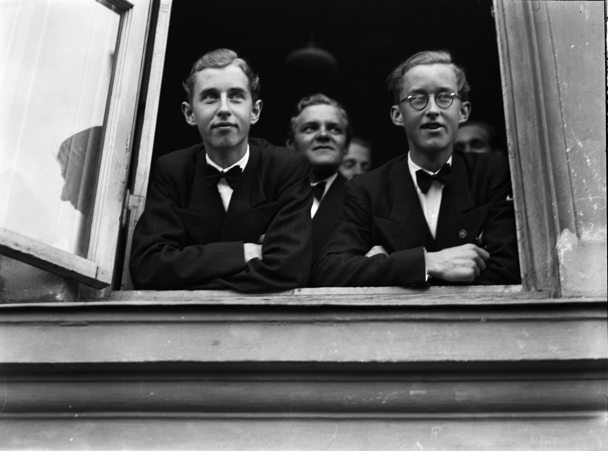 Unga män i fönstret, Högre Allmänna Läroverket, Skolgatan, Uppsala maj 1941
