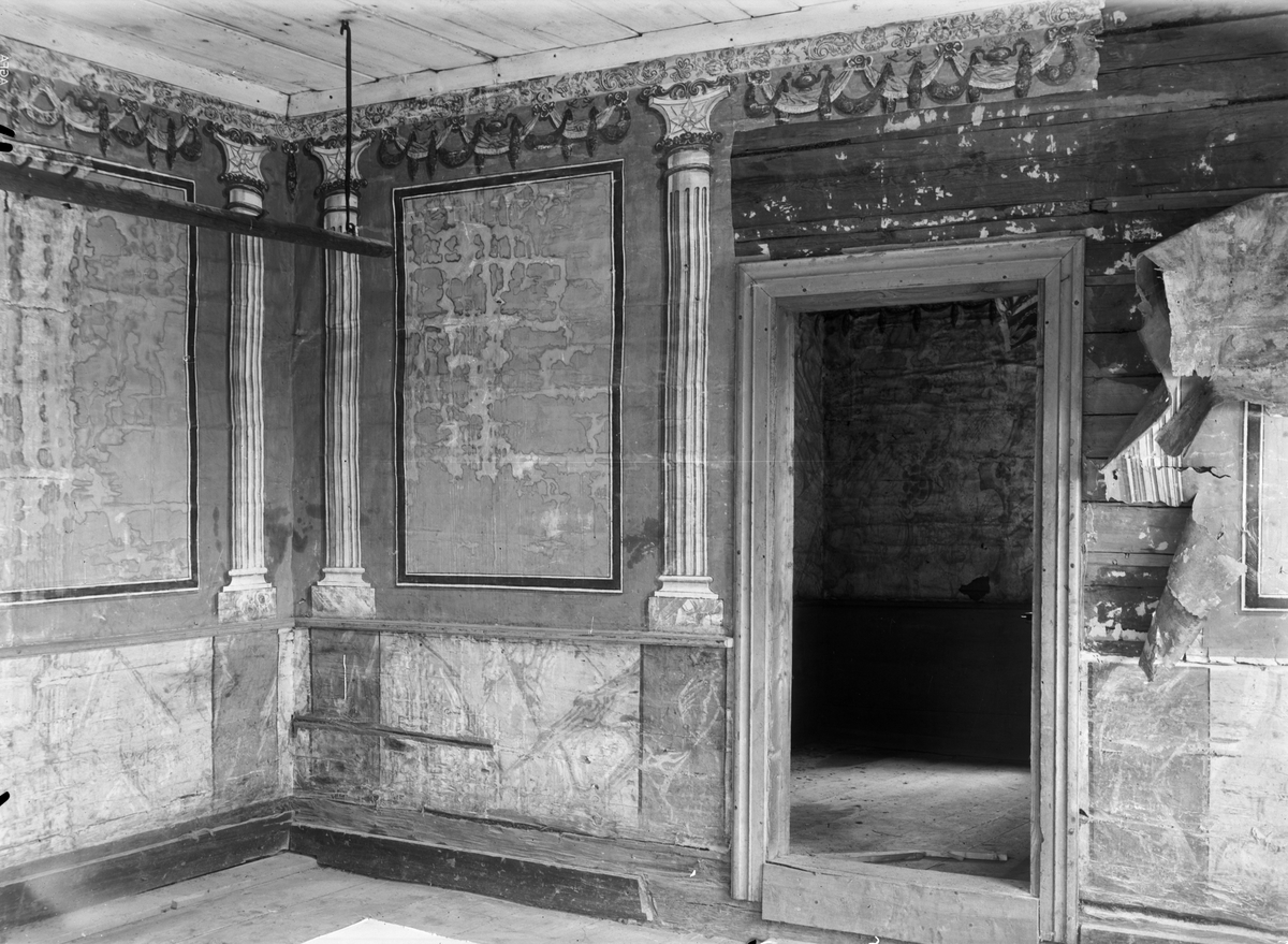 Bostadsinteriör med tapet och väggdekoration, Borgen, Östervåla socken, Uppland 1931