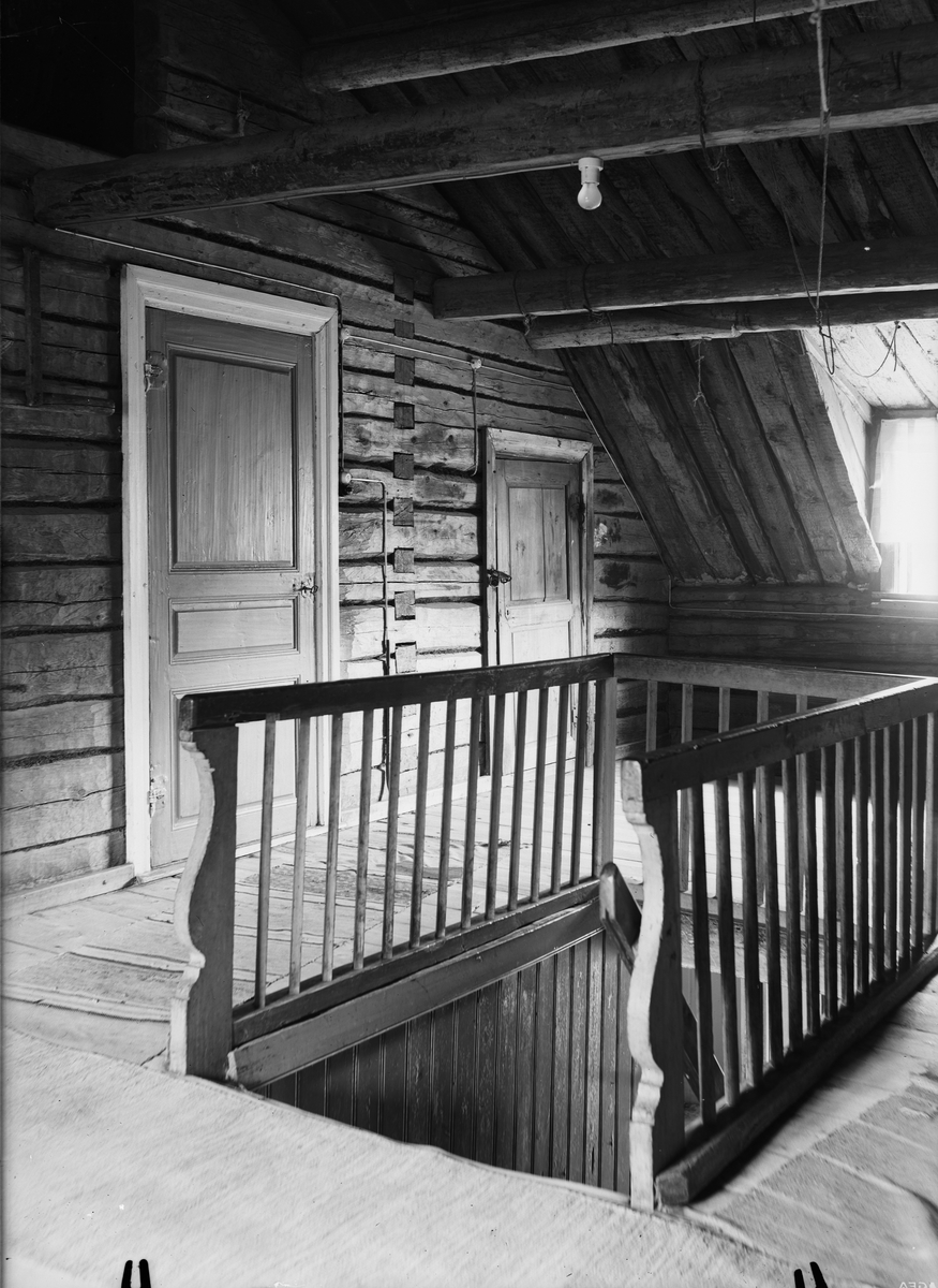 Interiör från vind med trappa, Västerlövsta socken, Uppland