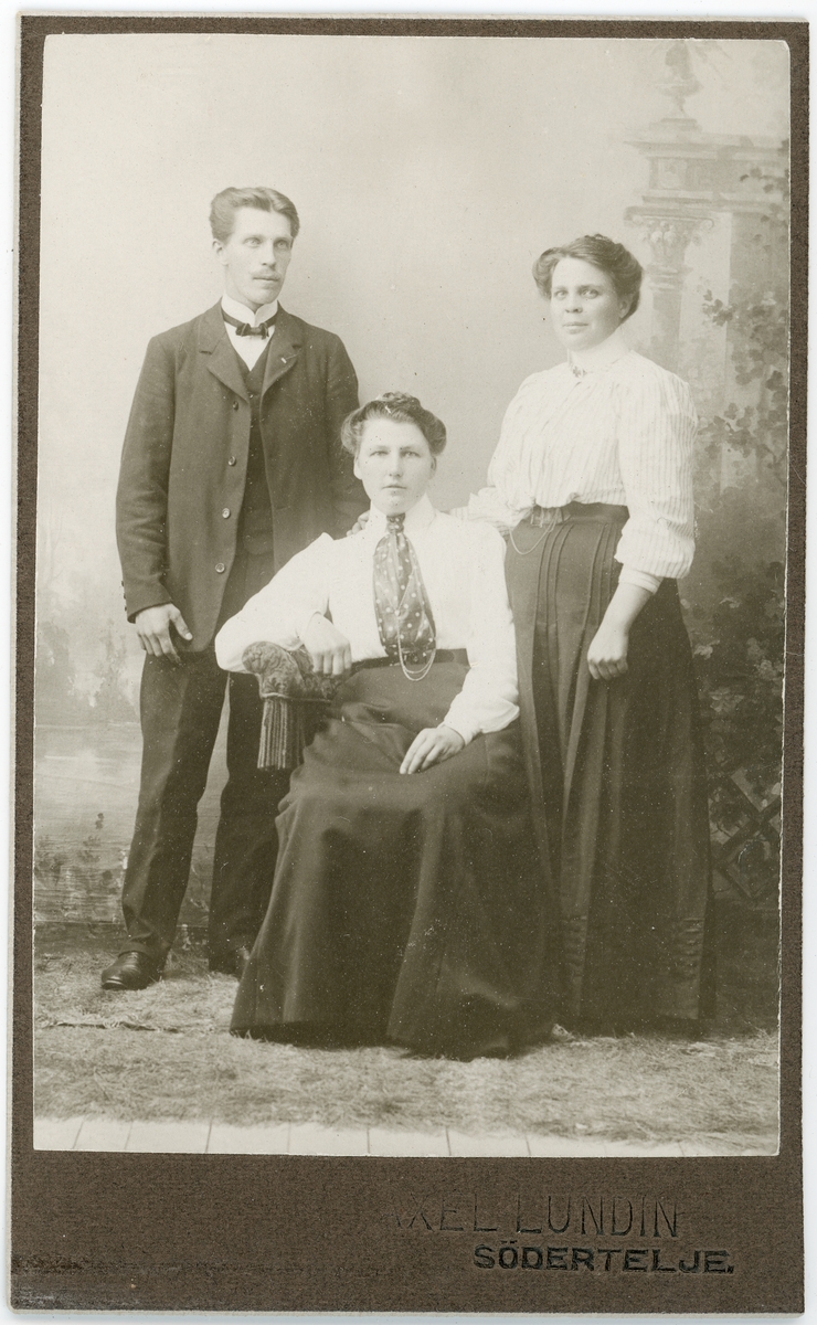 Kabinettsfotografi - två kvinnor och en man, Södertälje