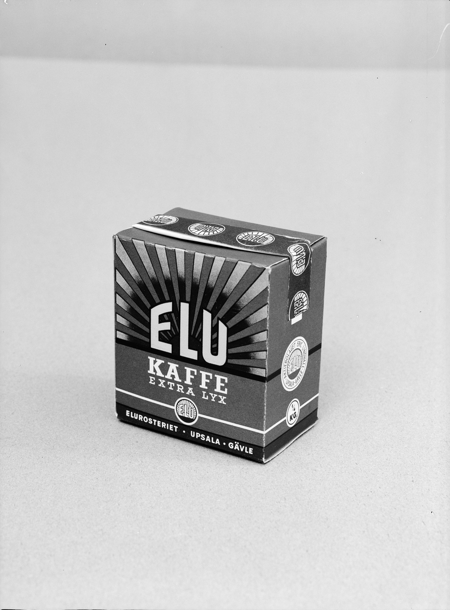 Kaffeförpackning, "ELU kaffe extra lyx", från AB Eric Lindvall och Elurosteriet, Kungsgatan, Uppsala december 1942