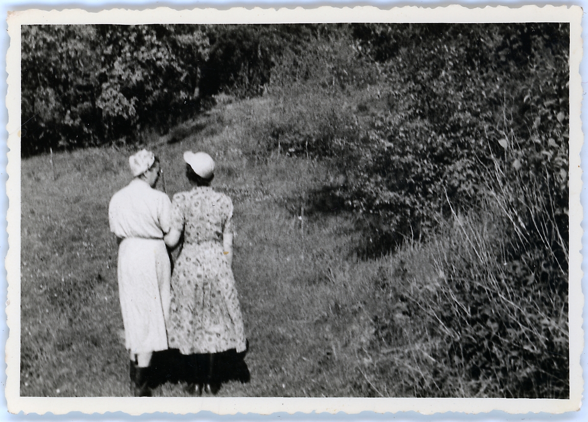 Ingegärd och Karin på väg ut i skogen att samla ved