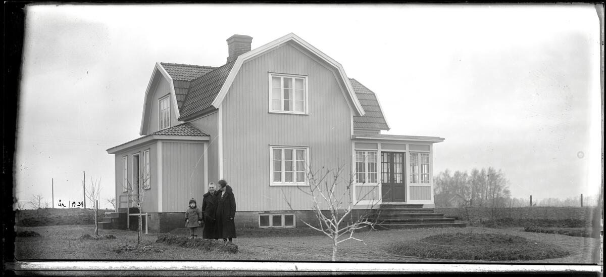 Familj framför bostadshus