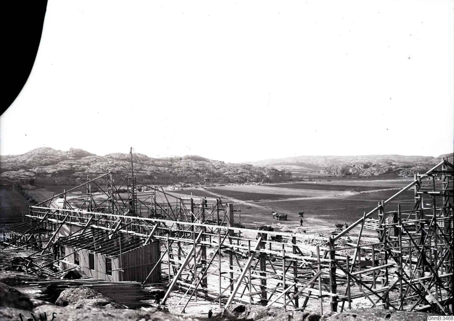 "Göteborgs flyghamn under anläggning. Flyghamnen i Torslanda, hangaren under uppbyggnad, maj"