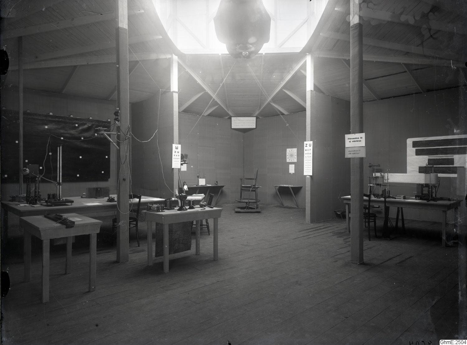 "Internationella luftfartsutställningen i Göteborg 1923, 20 juli-12 aug. Interiör från vetenskapliga avd."
