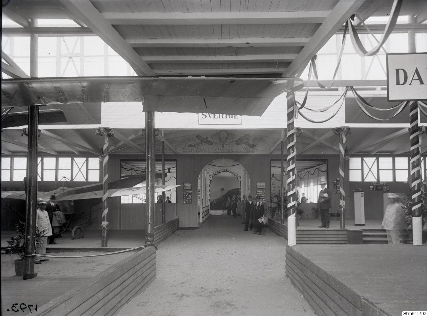 "Internationella luftfartsutställningen i Göteborg 1923, 20 juli-12 aug. Interiörer från nordiska luftfartshistoriska avdelningen"
