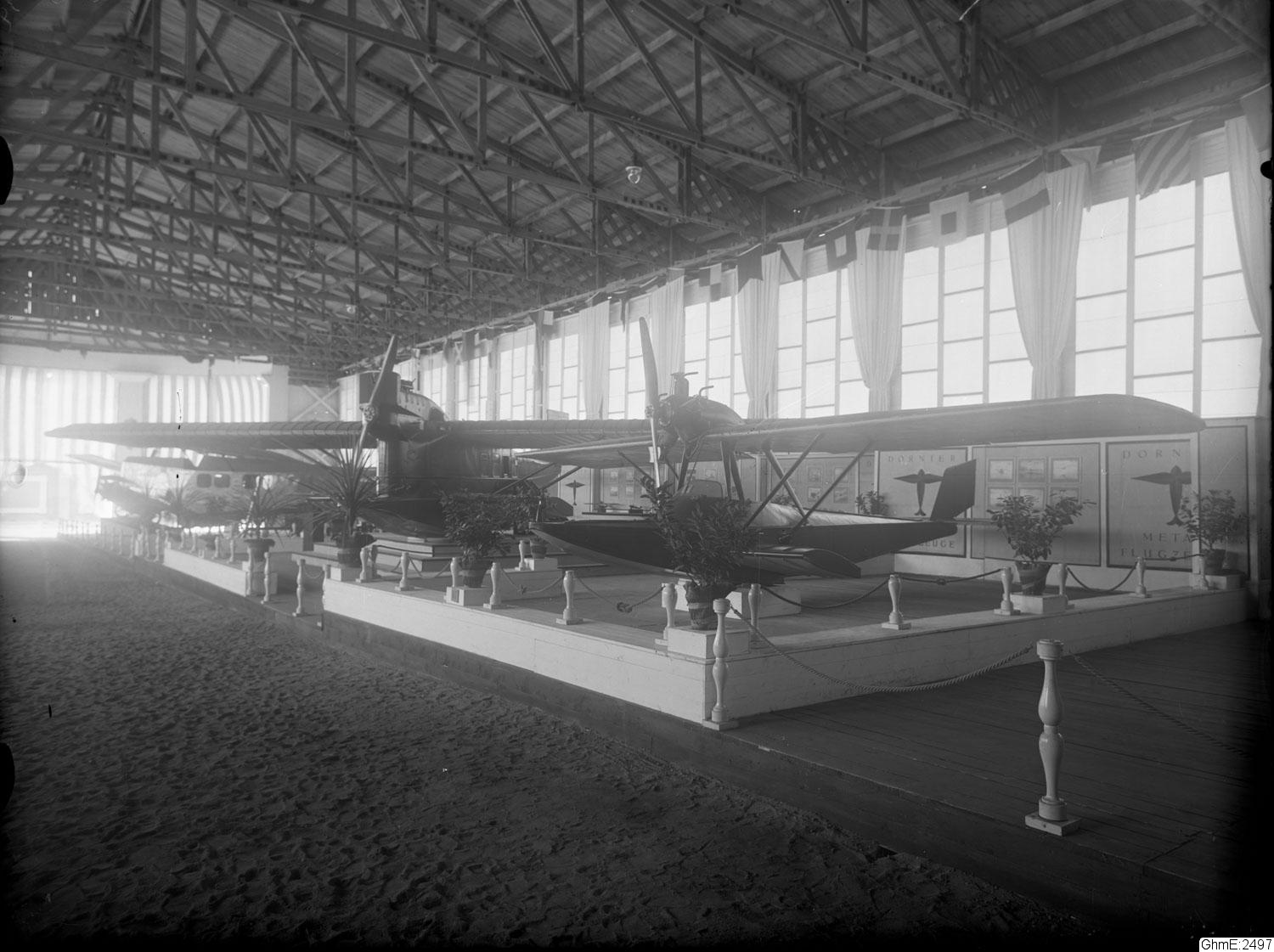 "Internationella luftfartsutställningen i Göteborg 1923, 20 juli-12 aug. Interiörer av stora hallens olika montrar. Dornier"