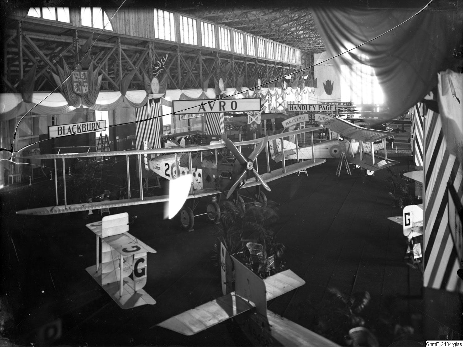 "Internationella luftfartsutställningen i Göteborg 1923, 20 juli-12 aug. Interiörer av stora hallens olika montrar"
