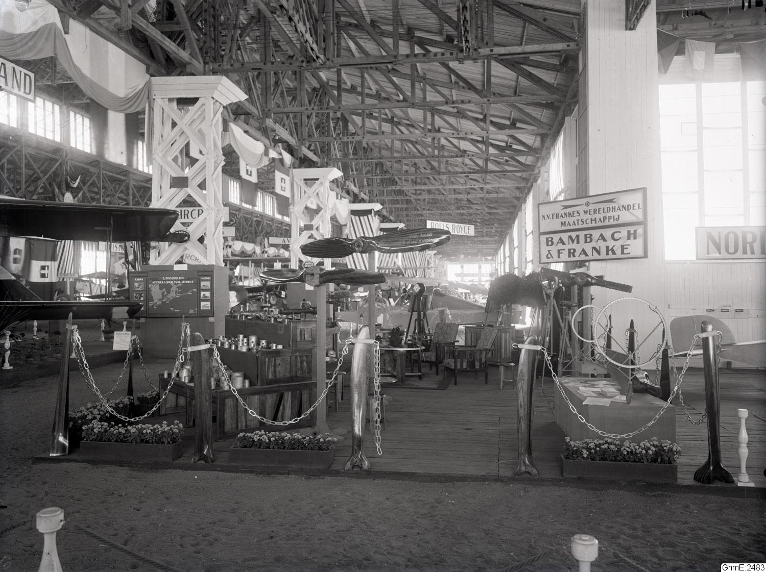 "Internationella luftfartsutställningen i Göteborg 1923, 20 juli-12 aug. Interiörer av stora hallens olika montrar"
