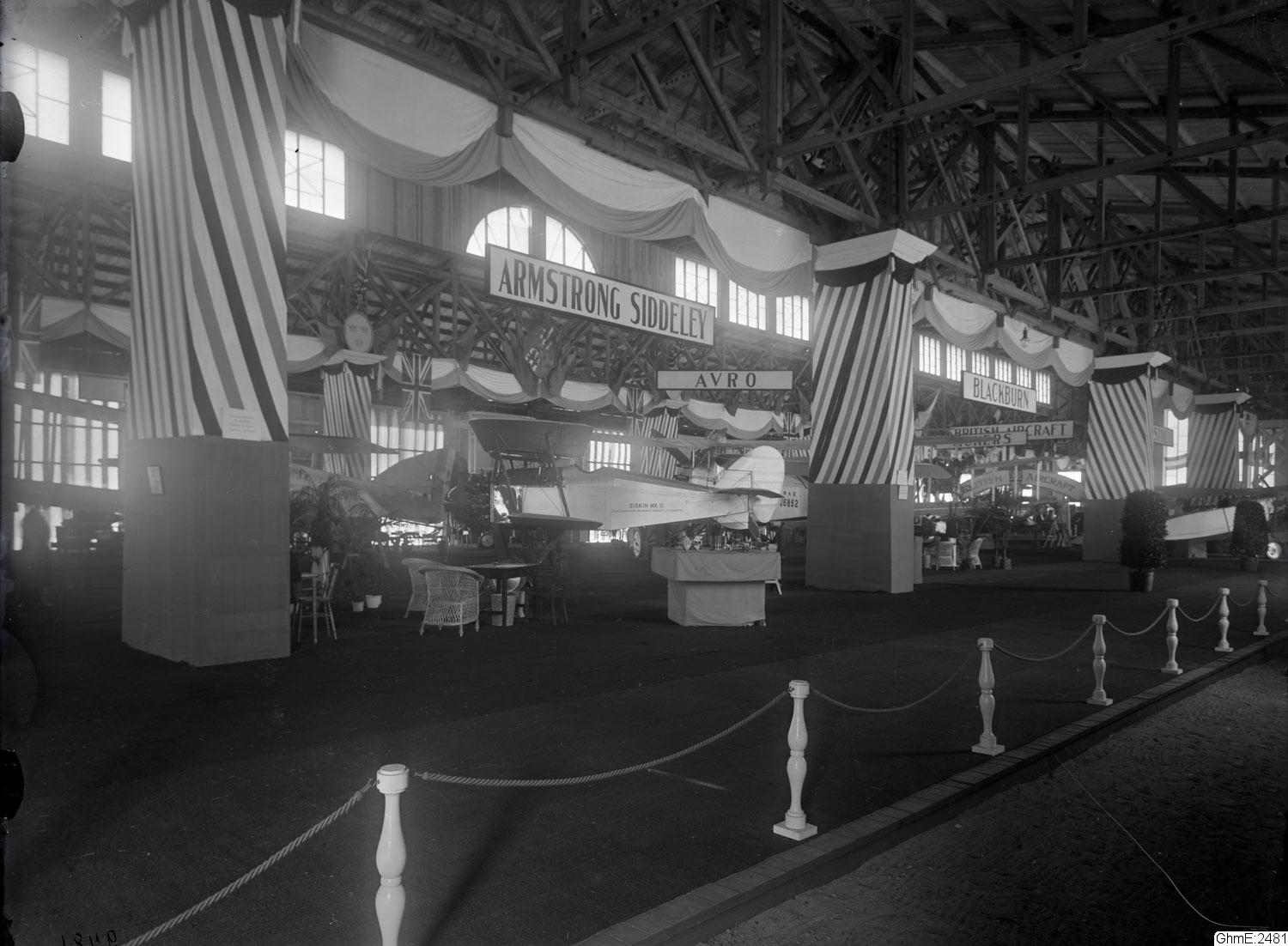 "Internationella luftfartsutställningen i Göteborg 1923, 20 juli-12 aug. Interiörer av stora hallens olika montrar. Armstrong Siddeley "