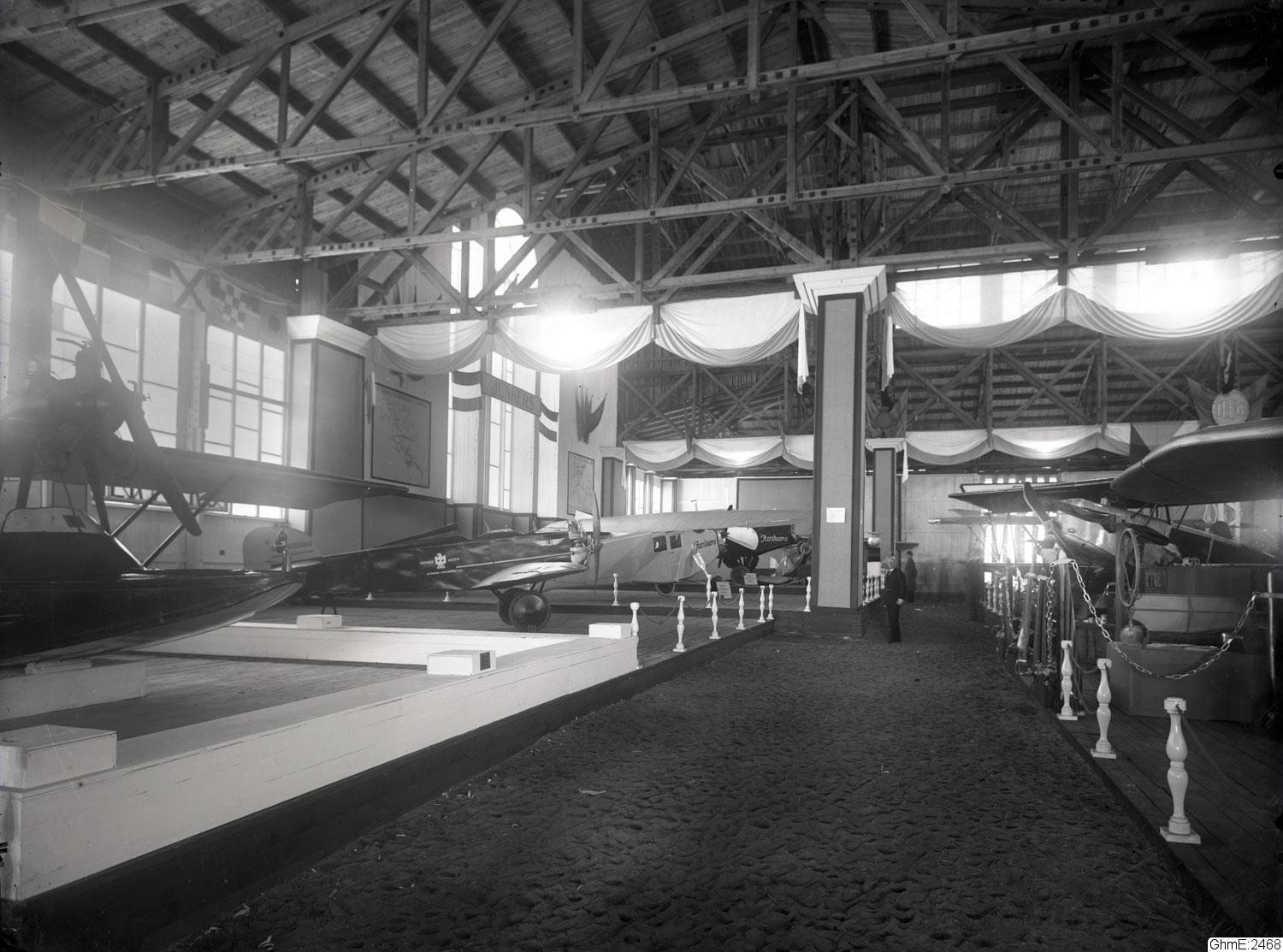 "Internationella luftfartsutställningen i Göteborg 1923, 20 juli-12 aug. Interiörer av stora hallens olika montrar. Junkers"