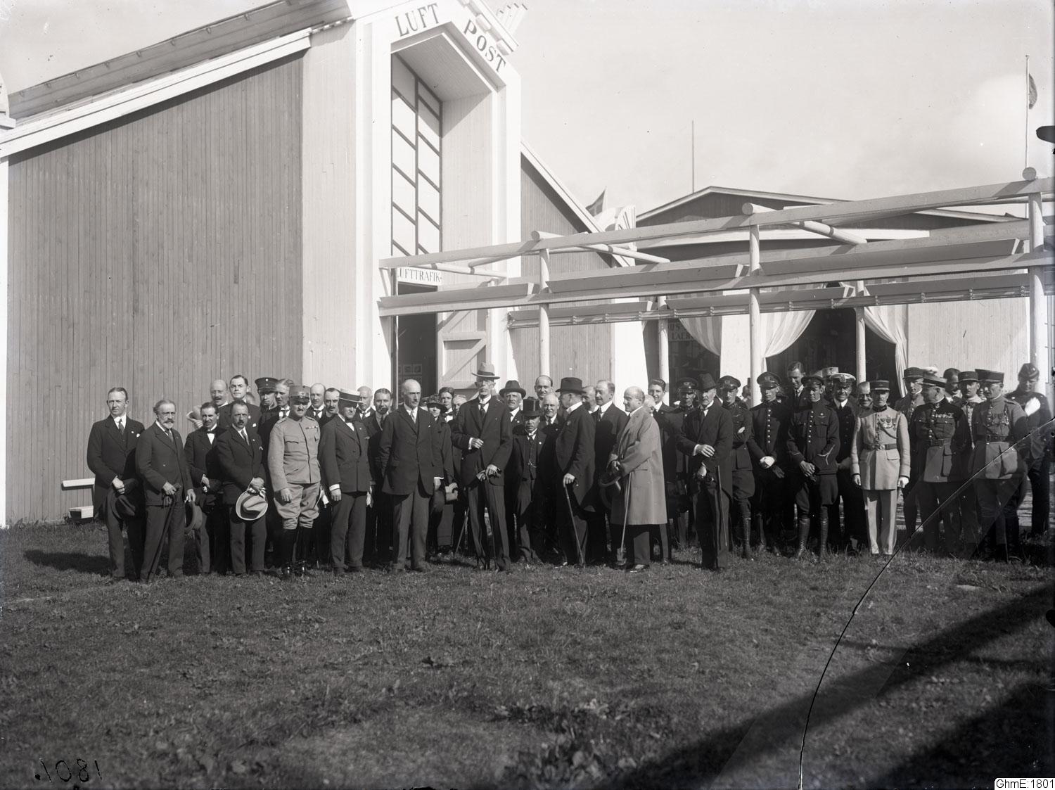 "Internationella luftfartsutställningen i Göteborg 1923, 20 juli-12 aug. Konungen och F. A. I:s kongressdelegater"