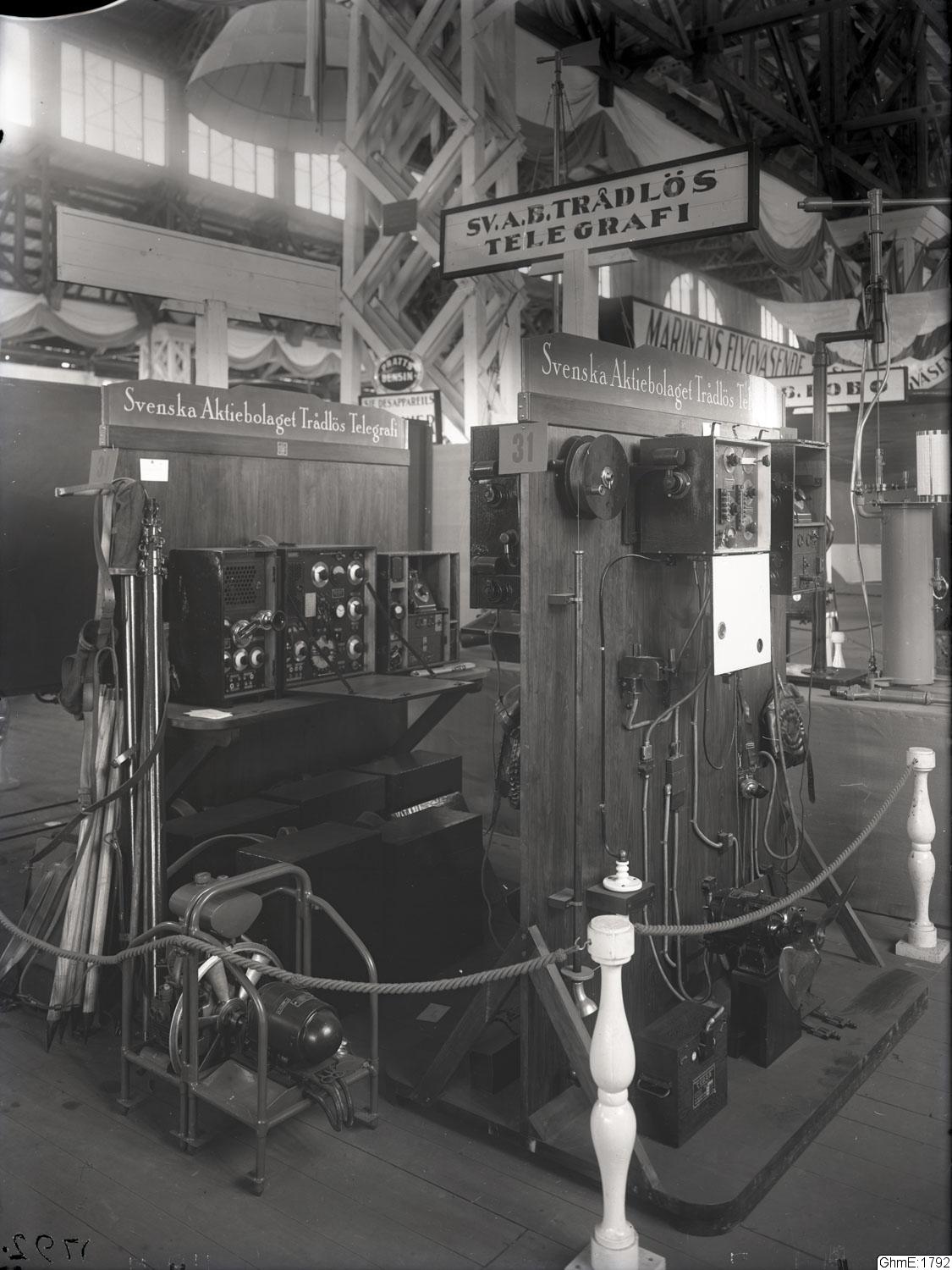 "Internationella luftfartsutställningen i Göteborg 1923, 20 juli-12 aug. Interiörer av stora hallens olika montrar"