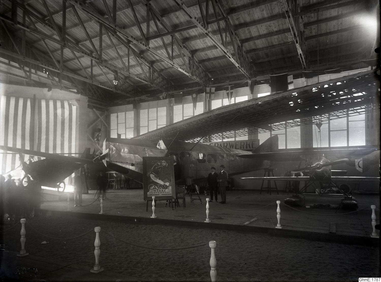Beskrivning: "Internationella luftfartsutställningen i Göteborg 1923, 20 juli-12 aug. Interiörer av stora hallens olika montrar"
