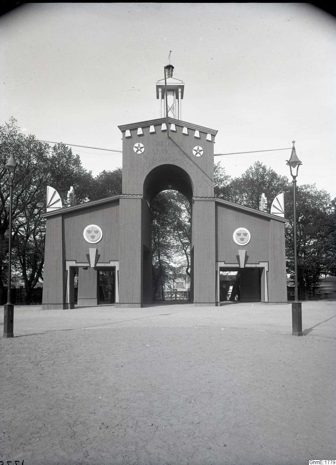 "Internationella luftfartsutställningen i Göteborg 1923, 20 juli-12 aug. Entrén till lantbruksmötet" Blev senare entré till luftfartsutställningen