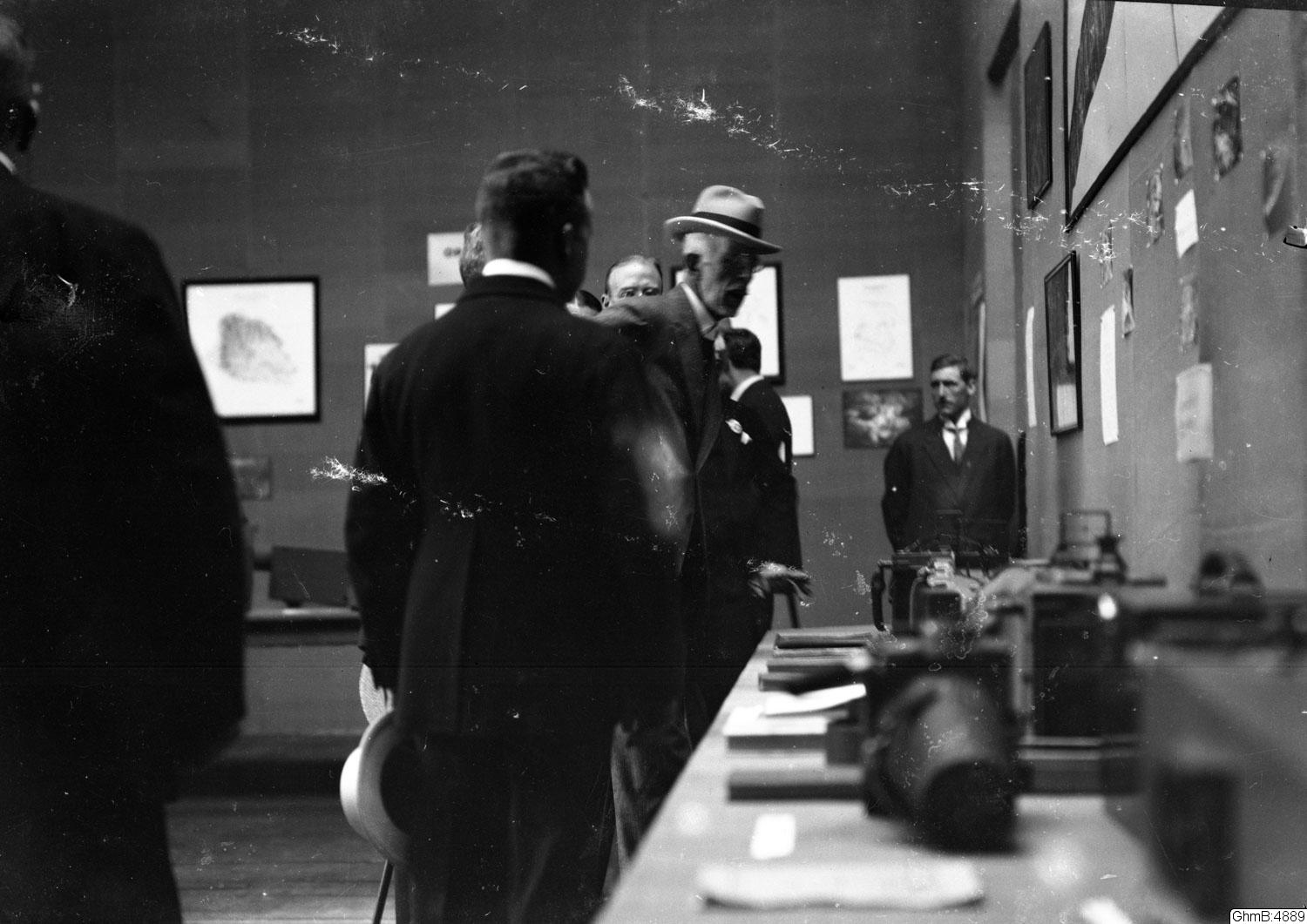 "Internationella luftfartsutställningen i Göteborg 1923, 20 juli-12 aug. Hans Maj:t Konungen besöker Ilug (Vetenskapliga avdelningen)"