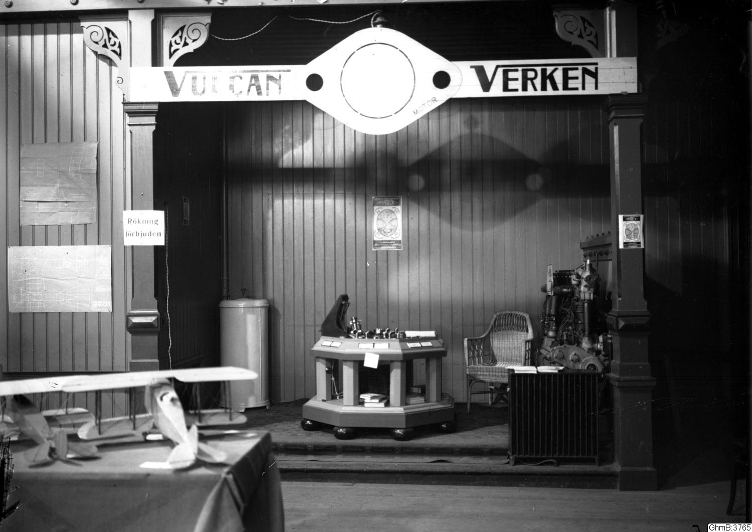 "Internationella luftfartsutställningen i Göteborg 1923, 20 juli-12 aug. Interiörer av stora hallens olika montrar"