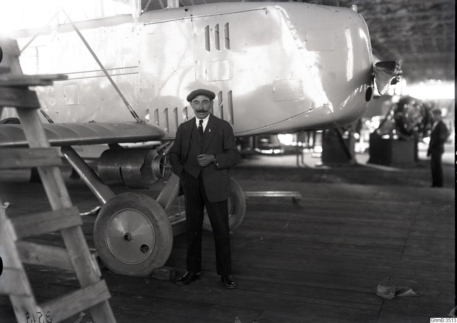 "Franske flygaren Cozic, representant för firman Bréguet" Cozic poserar framför ett Farmanflygplan, möjligtvis är uppgiften om Bréguet därför felaktig. Han var den första att flyga enligt principen tyngre än luft i Göteborg i mars 1911.