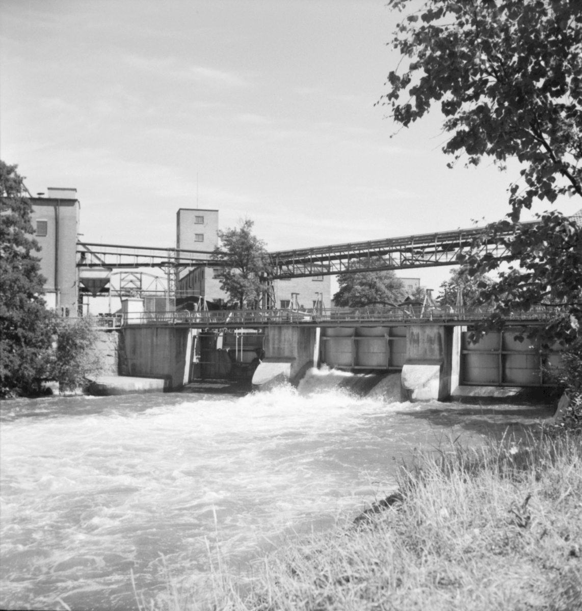 Titel: Skärblacka Bok och Paket, Ken Pålsson. Fabriken med näckrosor i färg; dammluckorna öppna