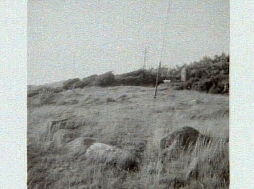 Järnåldersgravfältet Korsgata, Lunnaberg gård, Träslöv. Artikel i samband med bilderna publicerad i Varbergs Tidning 1961-10-11. Vid gravfältet låg en järnåldersgård och här finns ett 60-tal synliga fornlämningar av olika typer.