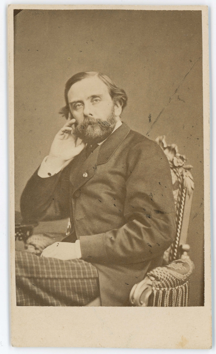Porträtt på Johan Fredrik Höckert. Målare, professor vid konstakademin. Född 26 augusti år 1826. Död 16 september år 1866.