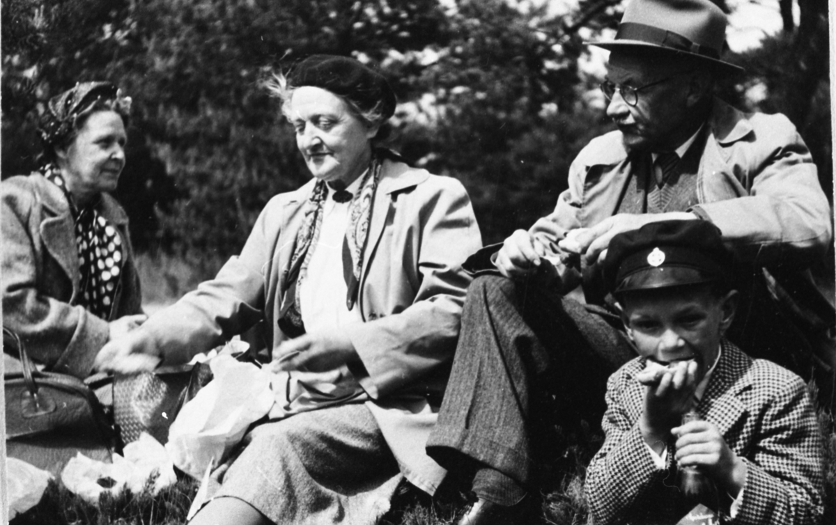 Från vänster: 1. Valdeborg Johansson, Vommedal. 2. Judith Johansson, Vommedal. 3. söndagsskollärare Gustav Johansson, Vommedal. 4. Christer Månsson (1947 - 2011). Valdeborg och Judith var kusiner. Judith var gift med Gustav. Relaterat motiv: A3324.