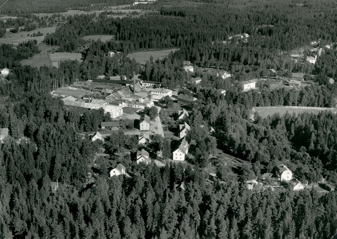 Flygfoto över Flygfors, Madesjö sn. Glasbruket i mitten av bilden.