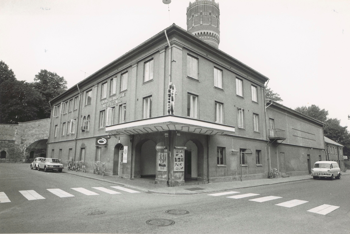 Biografen Palladium. Fasad mot Larmgatan - Norra Långgatan. I fastigheten har tidigare bl a varit skola. Sedan bion lade ner har det varit butik och restaurang i fastigheten. Bilderna är tagna inom ramen för Kalmar kommuns inventering av Kvarnholmens bebyggelse 1970-1971 och skänkta till länsmuseet.